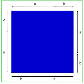 Just looking at the blue square, the area is (a + b) x (a + b) = a2 + 2ab + b2