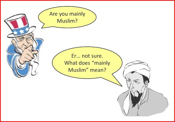 Okay, let’s take a look at section 217(a)(12) of the INA, 8 U.S.C. 1187(a)(12) document. INA, incidentally, stands for Immigration and Nationality Act and INA 1187 lays out the visa waiver program for alien visitors to the United States. It includes a list of countries deemed to be a threat to the United States and, right now, specifies the seven countries listed above. So, this is the origin of the list but note this: nowhere in Trump’s executive order or in INA 1187 is the classification “Muslim” mentioned and yet the BBC now always qualifies the seven countries as “mainly Muslim” in its reporting of the executive order and its aftermath. The New York Times uses the term “Muslim majority”. Why? Why are these seven countries characterised as “mainly Muslim” or “Muslim majority”? What does the characterisation mean and what is the intent in so characterising?