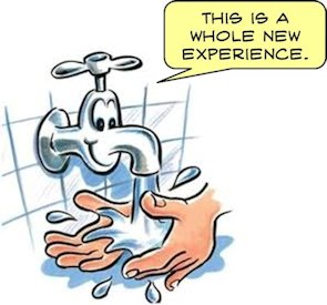 Soap works because it is made up of molecules with two very different ends. One end of soap molecules love water – they are hydrophilic. The other end of soap molecules hates water but love oils – they are hydrophobic. Thus, the oily ends attract all the greasy scummy oils on your body and the aqua-attracted end attracts the water and rinses the oily stuff away. You didn’t know that, did you? Well, now you do, thanks to the Web. Go wash your hands. It’ll be a whole new experience.