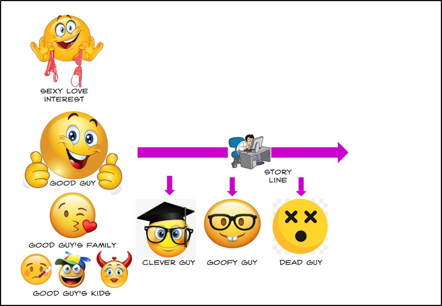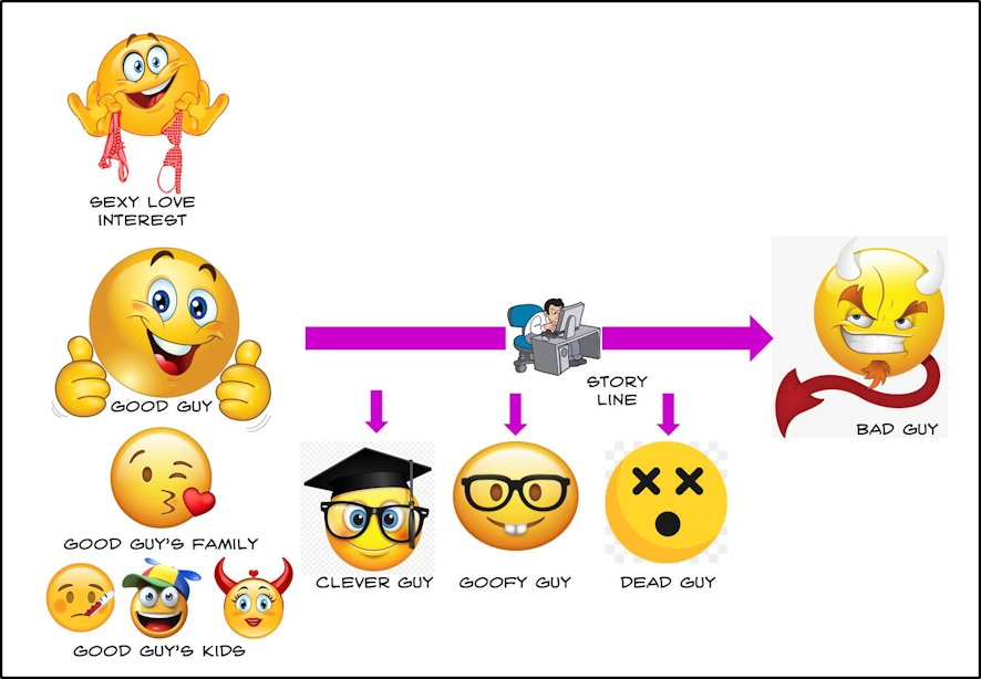 Finally, assign some sidekicks to the good guy: a goofy nerdy friend who knows absolutely everything about technology and works in a back room on an array of computers and CCTV or drone images and provides go-left go-right directions during a car chase; a clever guy who knows everything there is to know about everything and who can solve mysteries that date back to the dawn of time; and a friend who is destined to be killed somewhere along the way to evoke sympathy and empathy from the viewers.