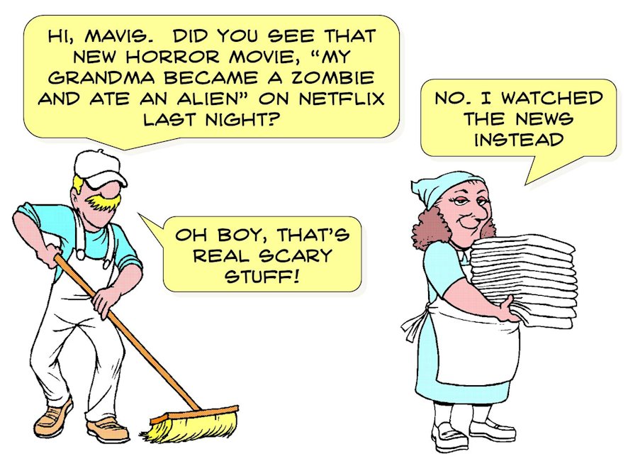 But, if horror movies are not your thing, there are plenty of other movies to tickle your cinematic palate. My granddaughters tell me that Mamma Mia: Here We Go Again (2018) is good wholesome family fun: no gore, no jump scares, no scary faces peering through an axe-torn door shouting “Heeeere’s Johnny!” (as in The Shining), no screaming screeching violins (as in Psycho), or no “Duunnn dunnn… duuuunnnn duun… duuunnnnnnnn dun dun dun dun dun dun dun dun dun dun dunnnnnnnnnnn dunnnn” scary background music (as in Jaws). Nope. Just music, dancing and light-hearted comedy.