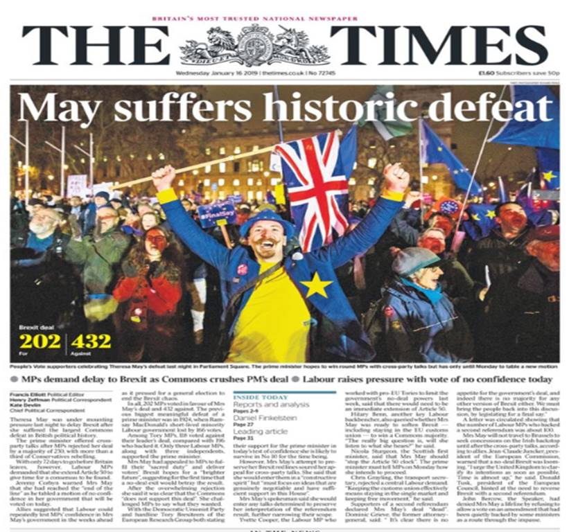 Boris Johnson, Brexit, Brexit defeat in House of Commons, David Cameron, Dominic Raab, Donald Tusk, Jacob Rees-Mogg, Jean-Claude Juncker, Jeremy Corbyn, Michael Gove, Michel Barnier, Theresa May, THeresa May's Commons defeat