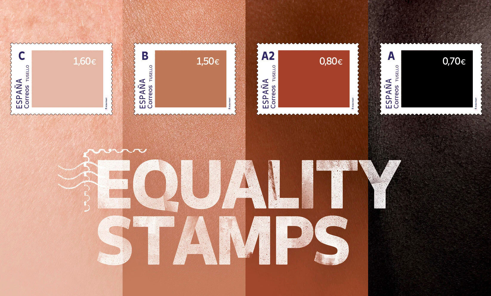 Here’s a story you might have missed. On the 25th May 2021, one year after George Floyd was murdered in Minneapolis, the Spanish postal service, Correos, released a set of four stamps designed to coincide with the anniversary of his death and to highlight racial inequality. The stamps depicted various light-to-dark skin colours and ranged in values from €1.60 (light skin) down to €0.70 (dark skin). Here they are: