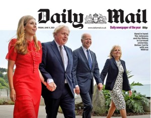 I was struck this morning by the photographs on the front of some of the UK national newspapers of Joe Biden holding hands with his wife, Jill, and Boris Johnson doing likewise with his wife Carrie. At the risk of being controversial, why are they doing so? I can’t remember the last time I held hands with my wife, or any other adult female, in public. Parents and grandparents hold the hands of offspring and grandchildren for protective reasons. Teenagers and young adults hold hands as a sign that they are in a relationship plus it’s normally the first instance of physical contact, Step 4 of Dobson’s Twelve Steps to Intimacy, or the precursor to First Base. Young cohabiting couples hold hands to demonstrate that they ‘are still in love’ and because they enjoy the physical contact – an oxytocin moment. And some say it’s also a sign of possession. Look at the photo above. In both cases, the male hand dominates the female hand. I’m no psychiatrist or psychologist but male covering female indicates possession to me.
