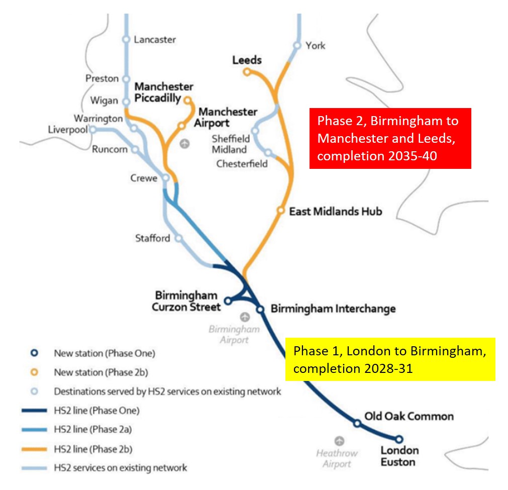 Where to start with this very ambitious and very very expensive government-funded project? Originally estimated to cost £37B in 2012 and now (2021) estimated to be £108B with a final cost that is impossible to predict but considered to be out of control, this project aims to lay down a high-speed (205 mph) railway track from London to Birmingham (Phase 1) and then on by separate existing and new tracks to Manchester and Leeds (Phase 2). When I read about new grandiose projects such as HS2, I ask myself one fundamental question—what problem will it solve?—followed by a host of secondary questions. How many people want to travel between London and Birmingham in under one hour (49 minutes instead of 81 minutes)? Will more people use this route as a result of the reduction in travel time? Will the faster train service reduce congestion on the motorways? Will the cost of a train ticket be acceptable or exorbitant? What will be the impact on fauna and flora, including people, living close to the tracks? Will the construction contribute to climate change? Is it possible to calculate a realistic return-on-investment given the 20-year timescale of the project? And, would the money be better spent improving the UK’s healthcare system, or the education system, or policing system, or…?