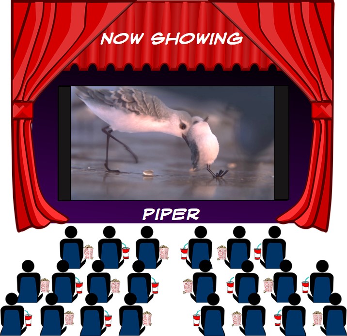 Ever since two of my granddaughters became hooked on the 1998 animated film, A Bug’s Life, and watched it incessantly for many weeks, I have been fascinated by animated films produced by Pixar Animation Studios. The storyline, the actions, the dialogue, the depictions of animals and their habits, everything about their movies both entrance me and amaze me. Recently, while browsing YouTube, I came across Piper, a 6-minute short animated film from Pixar Disney that won the 89th Academy Award for Best Animated Short Film in 2017. The story is simple; the animation incredible. A fledgling sandpiper is persuaded by her mother to leave her nest on the shoreline and go down to the edge of the sea to forage for food. As she does so, the tide rolls in and catches the small bird unawares, knocking her over and soaking her feathers. The bird, frightened, retreats to her nest and refuses to try again until, encouraged by her mother, she plucks up courage and somewhat anxiously runs down to the water’s edge again. But, as the tide rolls in, she runs back and takes shelter under some seaweed. As the tide retreats, two friendly hermit crabs come out from under the seaweed and encourage the piper to follow them back down to the water’s edge. When the water rushes in, another hermit crab shows her how to submerge herself under the sand in order to withstand the force of the water. The piper does so and while underwater and following a tap on the beak from a tiny claw, she opens her eyes and marvels at the abundance of food available. From that point on, her fear conquered, the piper collects food for the whole sandpiper community as the mother watches proudly from afar.
