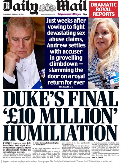 Judges: Queen Elizabeth 2, Jeremy Corbyn, Donald Trump, Virginia Guiffre, and Zendaya.